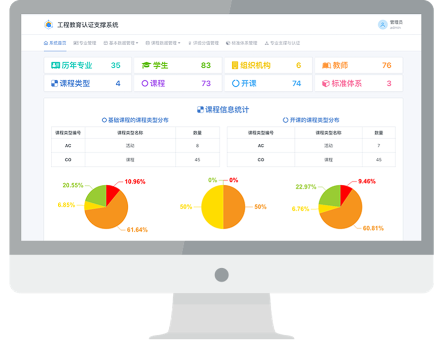 At the same time, it supports the establishment of a supporting relationship between course objectives and graduation requirement observation points to provide supporting basis for certification. Use information technology to solve the problem of large amounts of data for calculation of attainment, automatically output the degree of attainment of major graduation requirements, and quantify course results in the form of charts. The management, release and sharing of questionnaires and data collection can better empower colleges and universities to obtain various supporting materials needed in the process of professional certification. It can not only continuously improve the quality of teaching, but also greatly improve the efficiency of preparing professional certification materials.